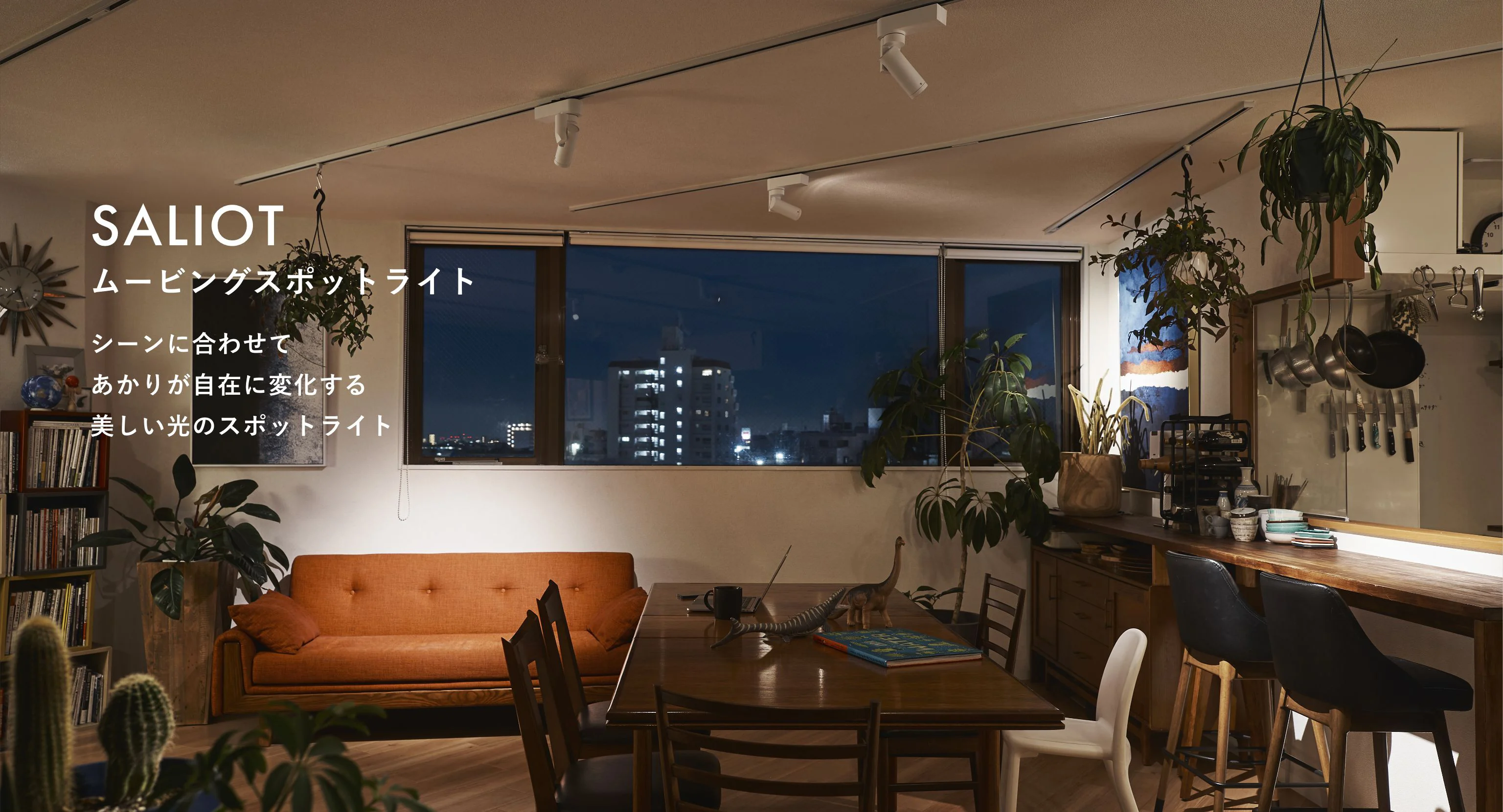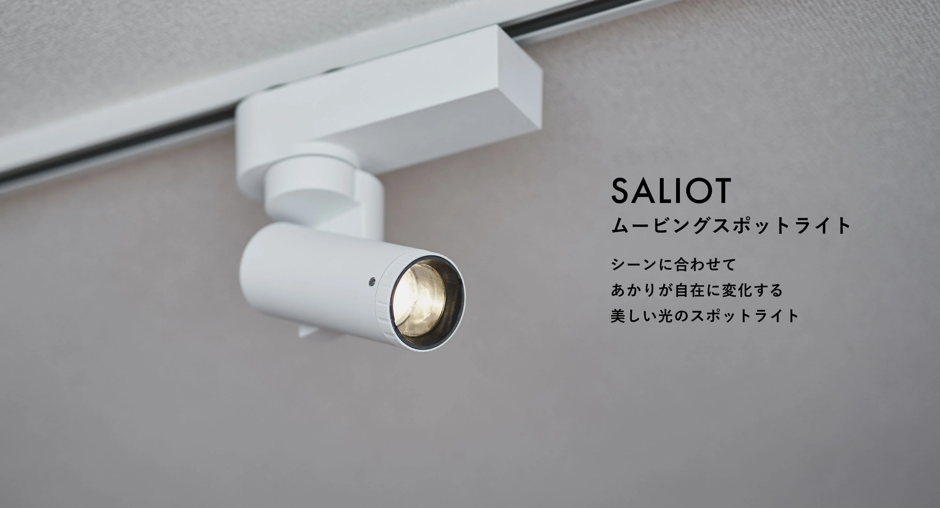 国内外の美術館・博物館やホテル、 商業施設に導入されているSALIOTから 住宅や小規模店舗むけに、ムービングスポットライトが登場。 静かでなめらかな動き、空間やものを美しく照らす高品位な光、 上質なデザインが新しい生活スタイルや市場を切り開きます。 手元を照らす ソファと壁を照らす 常夜灯 特徴 スマホで操作、タイマー設定も可能 専用アプリで、光の向き、明るさを変更できます。複数の器具を一斉に操作したり、タイマー設定で時間になると自動に光を変化させることもできます。 簡単取り付け ダクトレールがあれば、工具不要で簡単に取り付けできます。片手で楽に持ち上げられる重さです。 太陽光に近い、高演色性Ra97 美術館やホテルでも導入されているSALIOT。太陽光に近い高演色性で、空間や物を美しく照らします。 用途に合わせて配光角の調整が可能 灯具の先のリングを回転させると、狭角16°~広角28°まで配光角度を調整できます。 ※配光角度はアプリ操作不可 独自設計のレンズと反射板 光学設計の技術を活かし、光を最適に制御します。 静かでなめらかな動き アプリ操作で、左右0~180°、上下-90~90°の範囲まで、駆動します。 ユースケース 01 子供の勉強(リビング学習) リビングのどこで勉強しても手元をしっかり照らします 02 在宅ワーク 作業とリモート会議であかりを切り替え 03 テレビ背面の間接光 映り込みがなく画面がよりきれいに見えます 04 植生を照らす 演色性の高い光で緑が一層映えます ご家庭以外でのご利用も 飲食店 ランチとディナーでレイアウト変更 予約席をスポットで照らしてお出迎え 美容室 導線や作業に合わせてあかりが変化 準備と片付けは作業に適した環境に ギャラリー 作品の展示変更ごとに細かく光を調整 商談時は打合せスペースへ光をあてる よくあるご質問 Q. 鏡筒部の向きは手で変えてもいいですか A. 照射方向の向きは必ずアプリを操作して動かしてください。無理に手で動かしますと、破損の原因になります。 Q. インターネット環境、無線LAN環境は必要ですか A. 指定の端末とインターネット環境が必要です。 インターネット環境は、アプリをダウンロードし、初期設定でクラウドへ器具登録情報の保存を行う際に必要となります。 器具操作・スケジュール設定などはBluetooth®︎通信するため、インターネットに接続する必要はございません。 Q. 他の照明器具やシステムと接続できますか A. 接続することはできません。 Q. どこからでも操作できますか A. 外出先などからの遠隔操作には対応しておりません。器具が見える位置から操作してください。 Bluetooth®︎による通信を阻害するものがない環境でご使用ください。 もっと見る SALIOT ムービングスポットライト 価格 ¥24,800(税込) 本体色 白/黒 商品詳細 SALIOT ムービングスポットライト 調色タイプ 価格 ¥29,800(税込) 本体色 白/黒 商品詳細